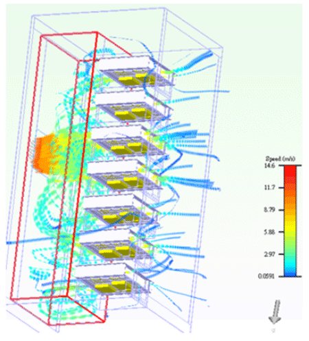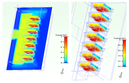 SVG散熱器單體模組熱源布置示意圖:機柜整體局部示意圖: