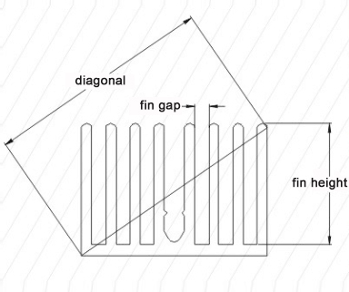 Fin profile #2: Smaller fin tip with a larger fin base and it forms a taper. High aspect ratio which is suitable for forced air cooling products. It is more lightweight under the premise of no performance reduction.