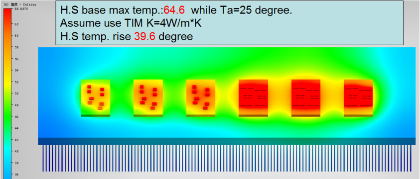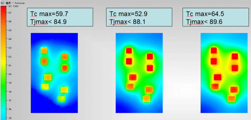 RFC模塊散熱器溫度耗散仿真結(jié)果及示意圖: