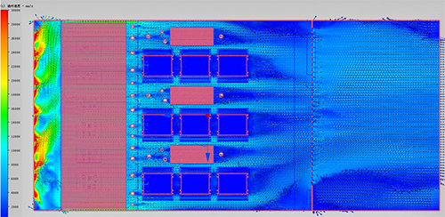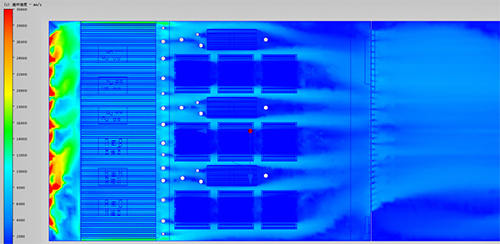儲能系統(tǒng)逆變器散熱器中截面耗散速度仿真示意圖: